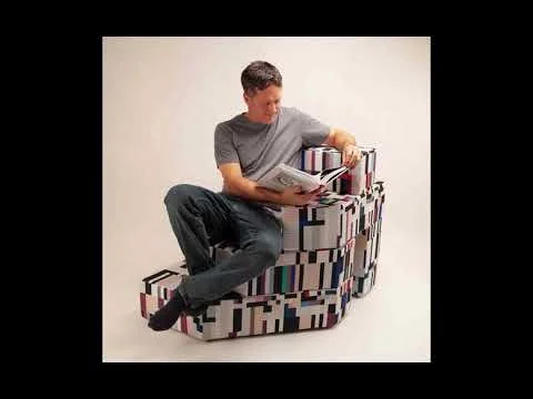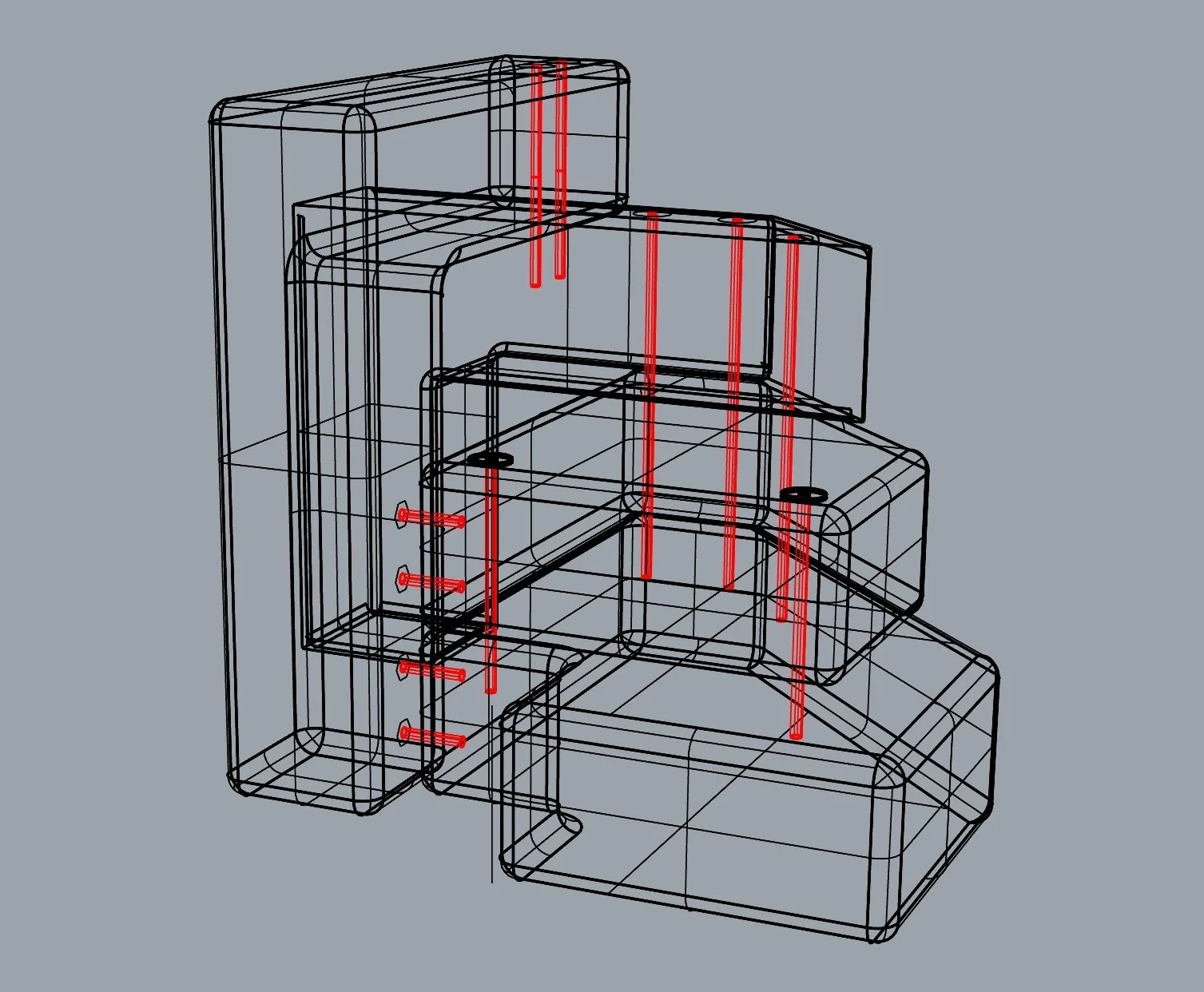 The idea for the Brayton Chair came from reclining on a staircase where the steps provide a comfortable seat, an armrest, and a footrest. Prototyping started with sketches and small wooden blocks, progressed to a cardboard model, and then to a 3D print. The chair was then modelled in Rhino and plans were made for construction of the various components. Construction began with a wooden base followed by layered foam and finally, a muslin cover. Final upholstery was completed with a LEED certified, fully recycled content polyester fabric - Pixel Color Bar designed by Jenny Mcgee Dougherty for Designtex.
