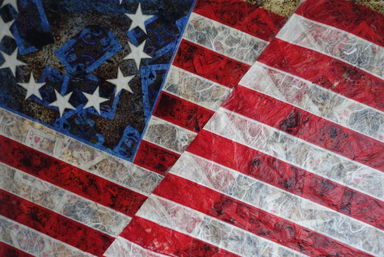 This piece began as a poem screen-printed on a red, white and blue collage.